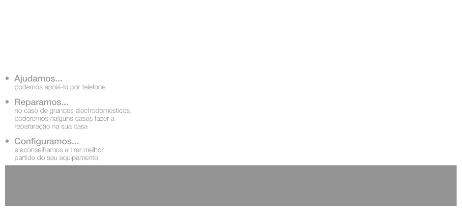 Reparamos televisores, máquinas de lavar roupa e louça, e outros electrodomésticos, computadores, hardware e software, instalamos e configuramos sistemas operativos Windows, Mac OS, iPhones, iPads, configuramos redes e damos assistência técnica informática em geral.